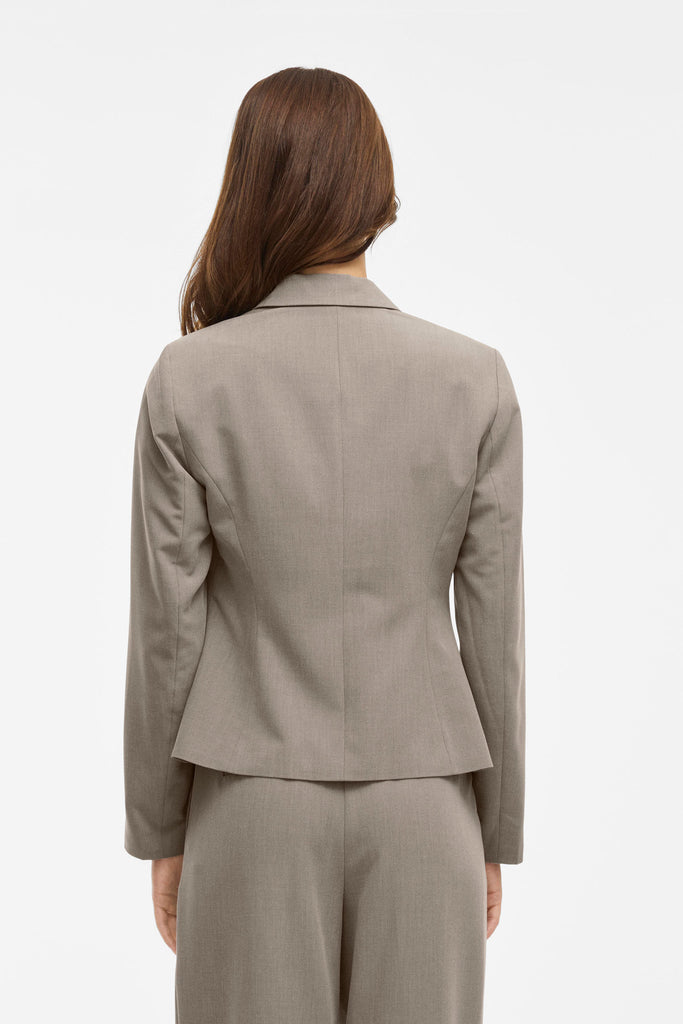 Dieser taillierte Blazer verleiht jedem Outfit eine elegante Note. Mit klassischem Revers, einer Knopfleiste mit einem Knopf und formgebenden Nähten lässt er sich ideal sowohl im Office als auch zu formellen Anlässen kombinieren. Die leicht verkürzte Länge betont die Taille und sorgt für eine feminine Silhouette.