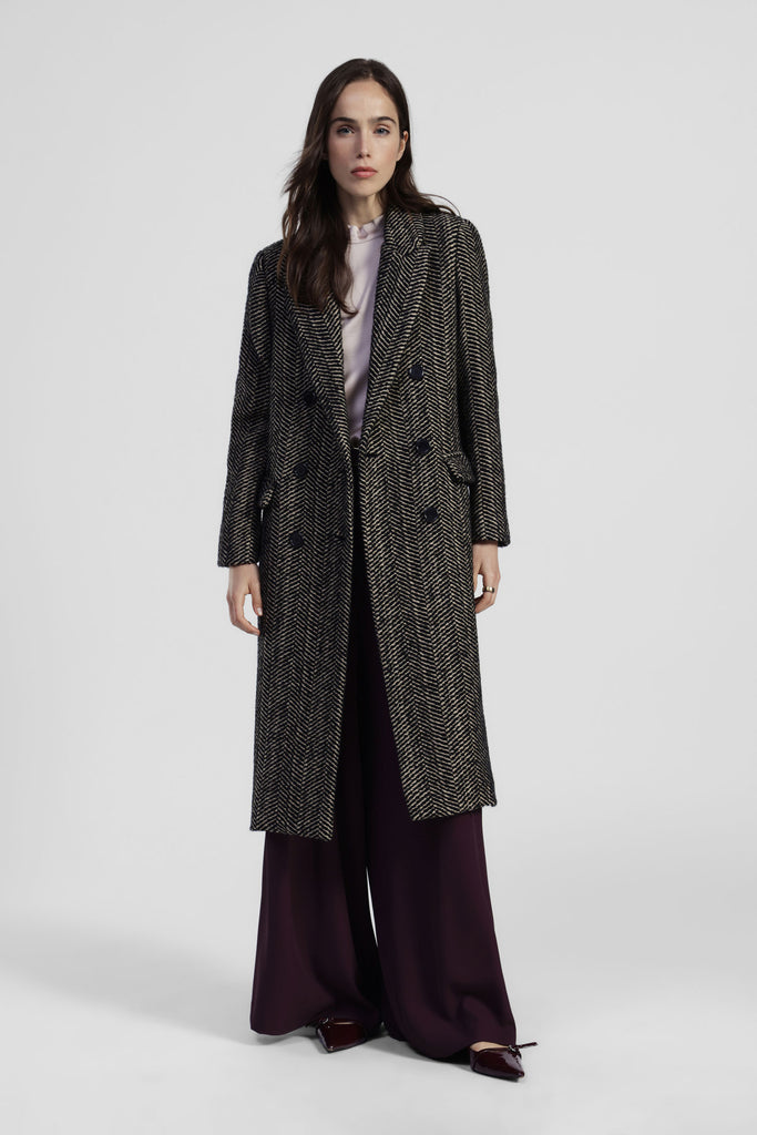 Doppelreihiger Mantel mit Chevron-Muster und Taschen