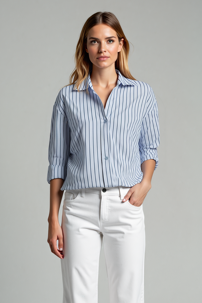 Gestreiftes T-Shirt mit V-Ausschnitt